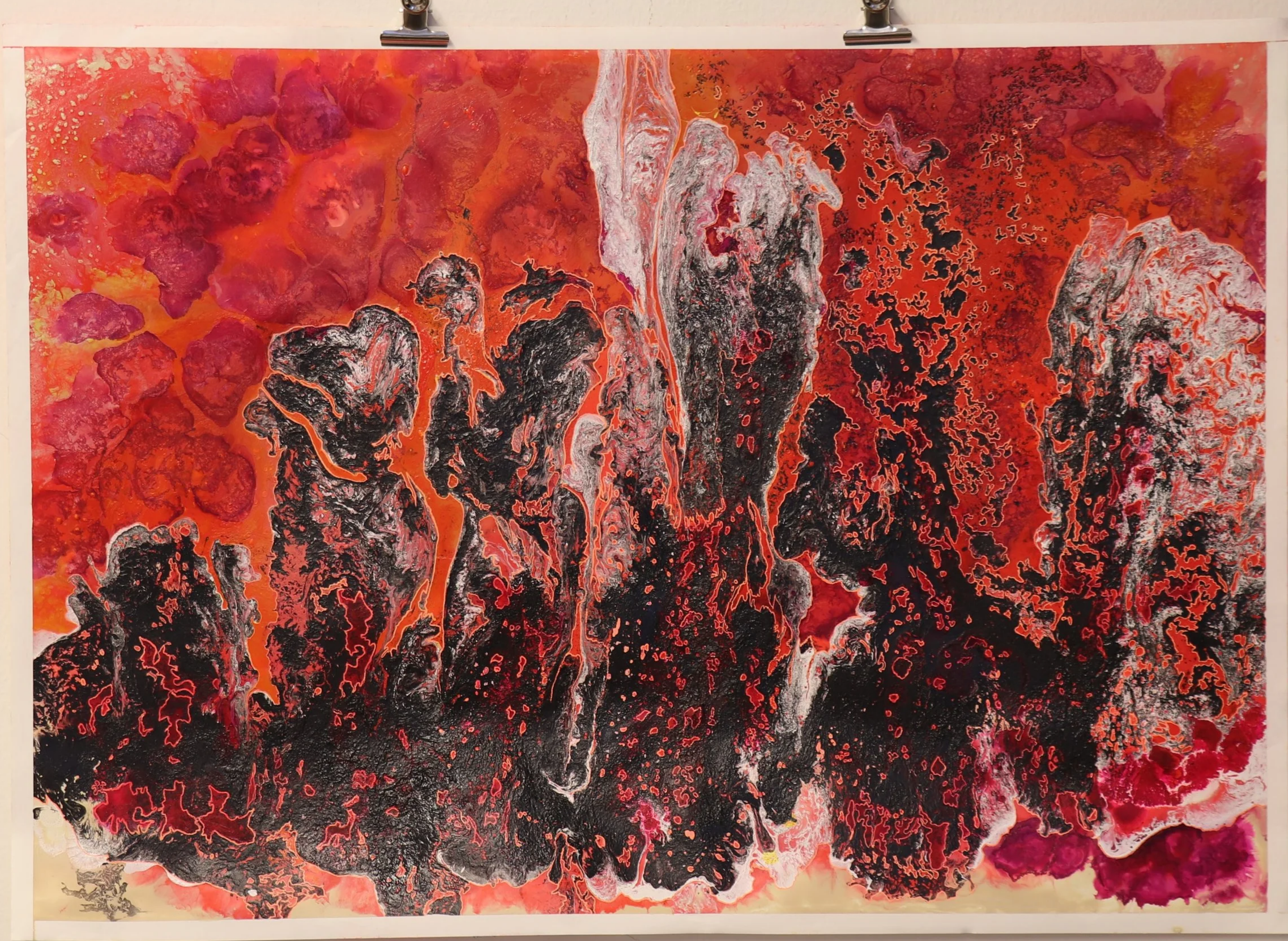 Die intensive Farbigkeit und die komplexen Strukturen verleihen den Arbeiten eine starke physische Präsenz. Zugleich eröffnen sie einen Raum für Assoziationen: Naturformen, innere Zustände, Verletzlichkeit, Kraft und die Schönheit des Komplexen. Die Serie versteht Prozess nicht als lineare Entwicklung, sondern als ein lebendiges Gefüge aus Bewegung, Überlagerung und fortwährender Verwandlung.